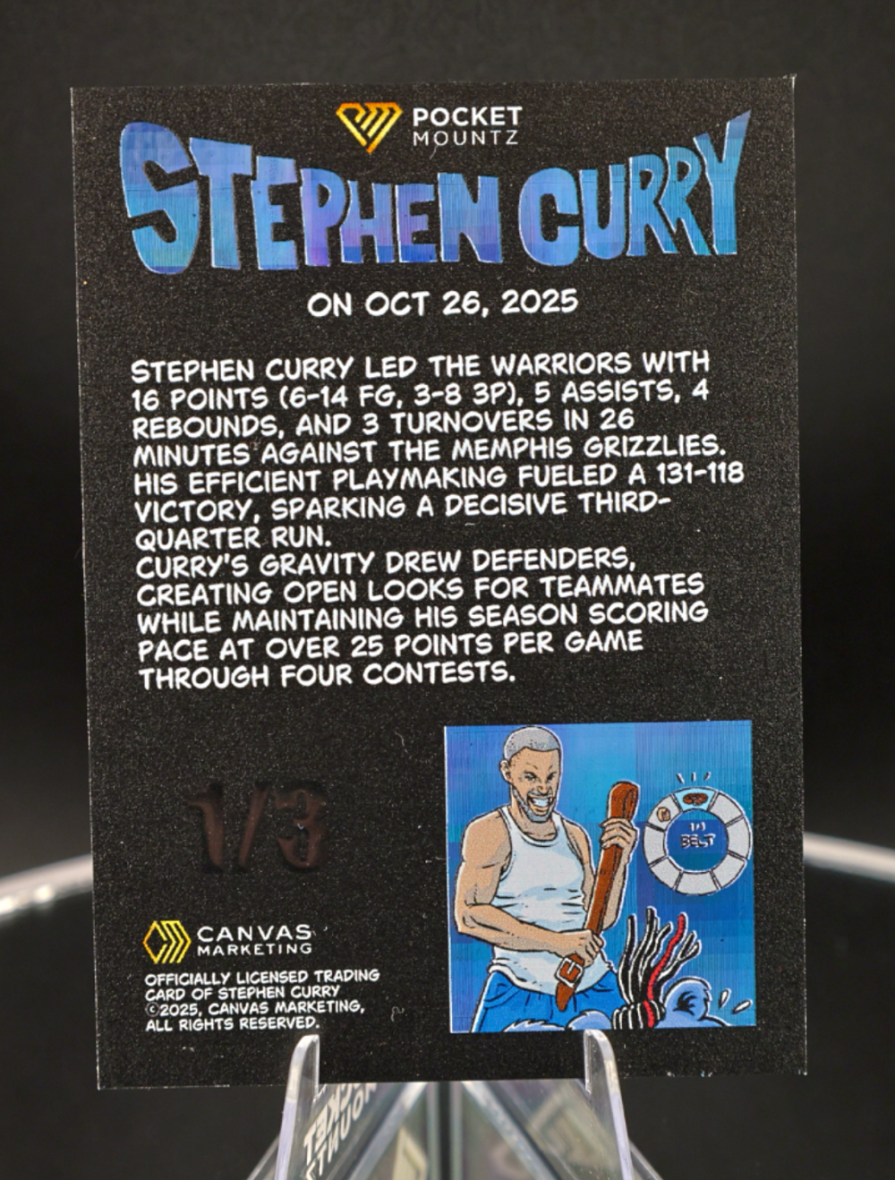 “BTA 6” captures a fierce, cinematic moment of confidence and control — the embodiment of a player who’s seen it all and still comes out smiling. This bold Pocket Mountz trading card turns that unstoppable swagger into collectible art, where power meets personality.