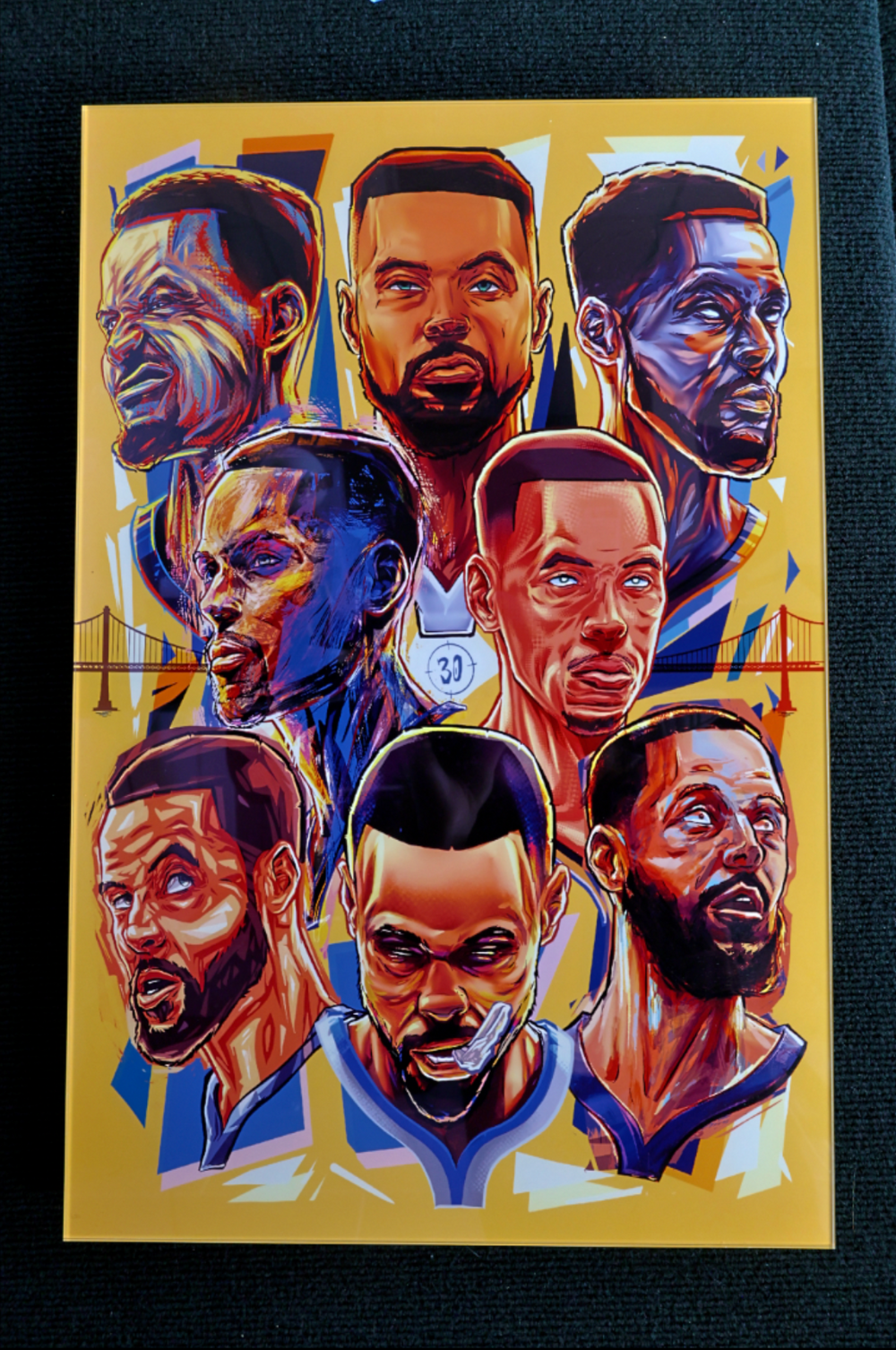 Elevate your collection with this rare Steph Curry "Faces" Pocket Mountz collectible piece (featuring artwork by Mickey Ardell), crafted for true fans and serious collectors. This art is mounted on premium museum glass, offering crystal-clear display quality while preserving the artistry and detail of the design.