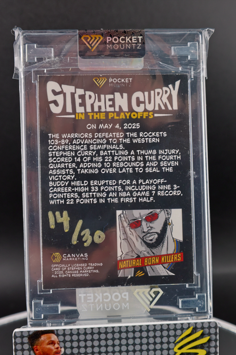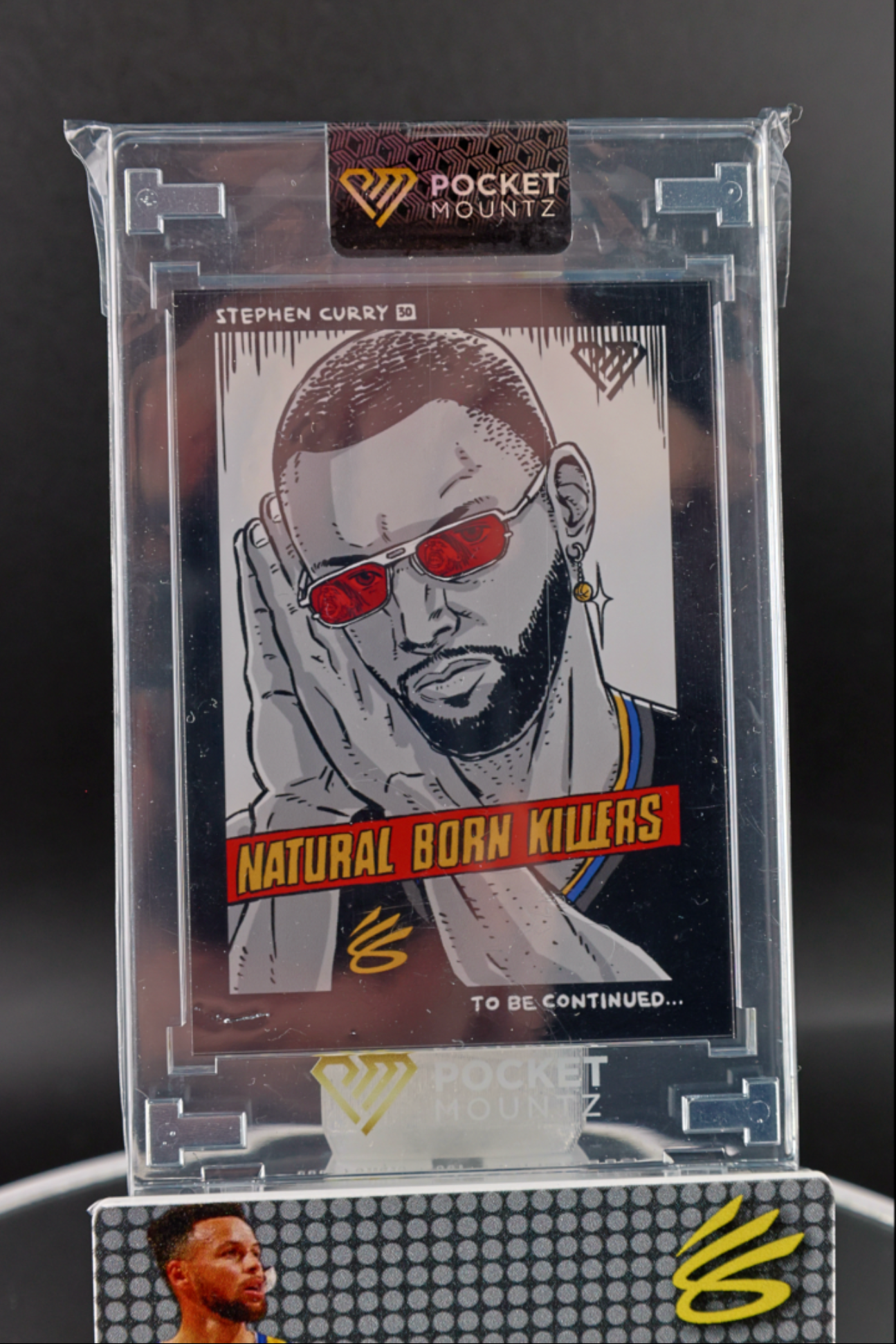 Elevate your collection with this rare Steph Curry "Natural Born Killers" Pocket Mountz trading card, crafted for true fans and serious collectors. Each card is mounted on premium museum glass, offering crystal-clear display quality while preserving the artistry and detail of the design. With only 30 copies short printed worldwide, this exclusive piece is a standout in any collection.